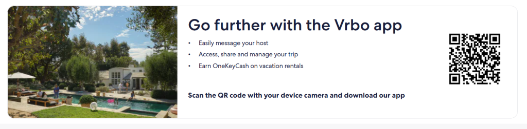 Plus, if you’re an avid traveler, the VRBO app allows you to earn OneKeyCash on bookings, which you can use toward future trips. This feature makes booking through VRBO even more rewarding—so you can save money on your next adventure.